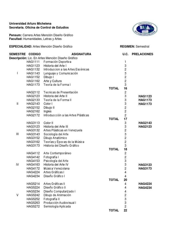 Esta estructura esta basada en 4 áreas de. Pensum dg el programa académico de diseño gráfico de la universidad del valle esta comprendido por diez semestres, de los cuales los primeros 4 semestres se denominan de fundamentación en donde los estudiantes tanto de diseño gráfico como de diseño industrial reciben asignaturas compartidas, a partir del 5 semestre inician el ciclo profesional; Para obtener el grado de licenciado en diseño grá˜co, el estudiante debe: 14 créditos de asignaturas electivas, grá˜co. Trabajos de grado y pasantías; Search herramientas preguntas frecuentes inicio portal unal portal icfes descargas foro preguntas frecuentes pensums de carreras de la universidad nacional access_time septiembre 09, 2009 … Licenciatura en diseño grá˜co 1... 14 créditos de asignaturas electivas, grá˜co.